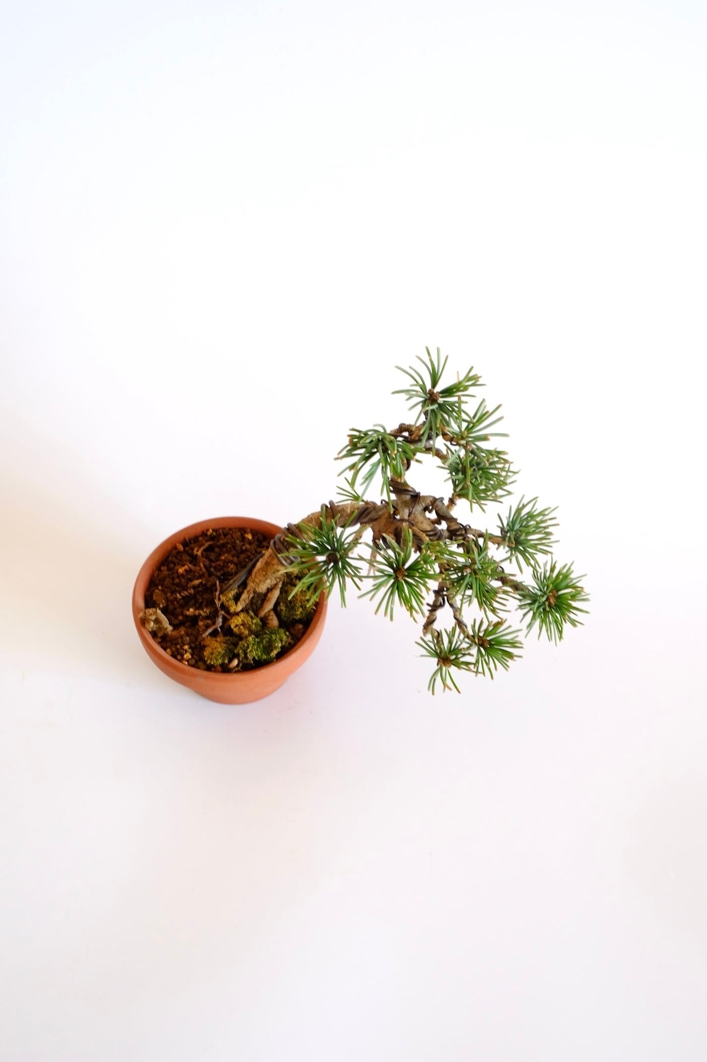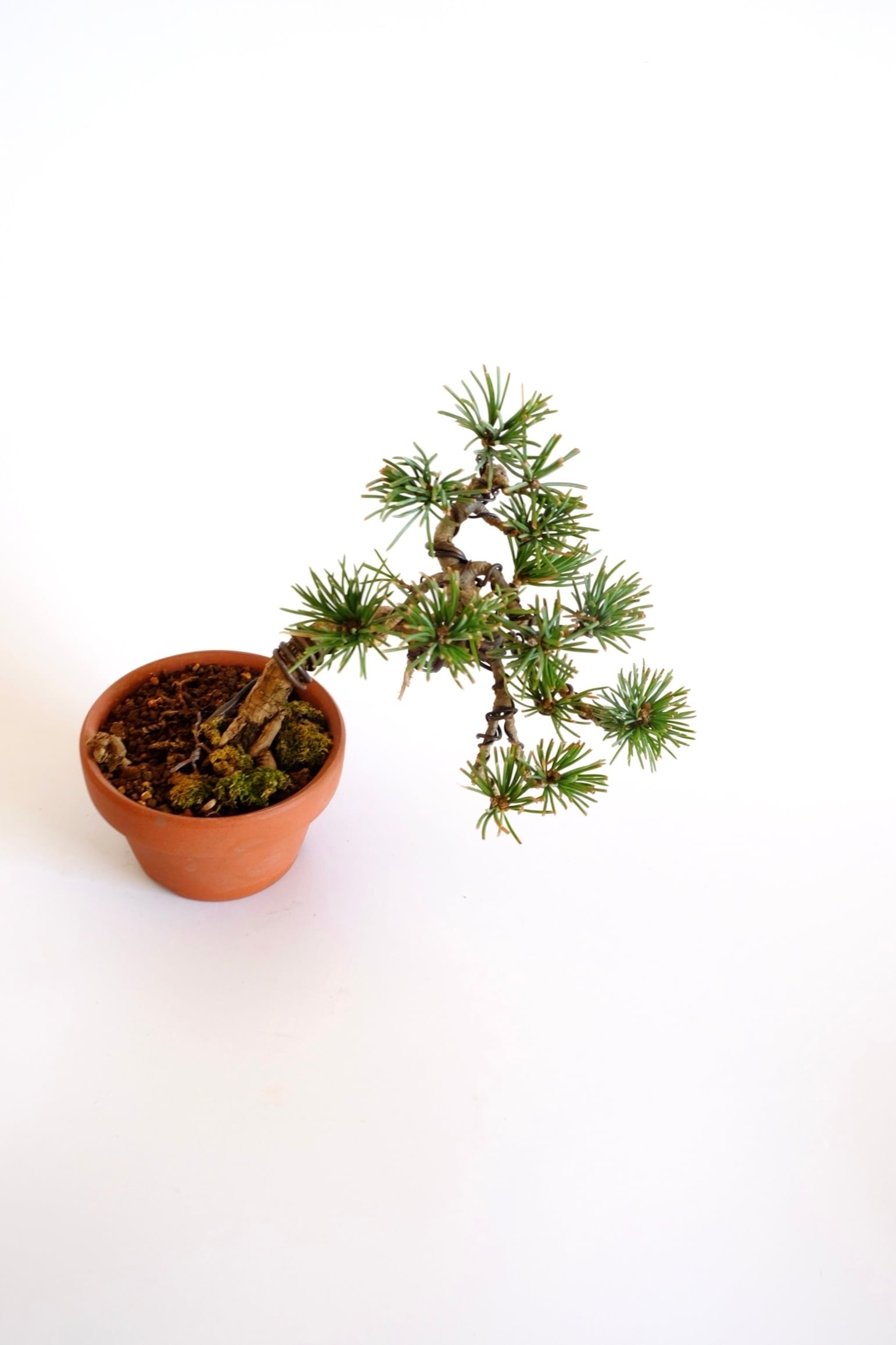 こちらは実生5年ほどの五葉松に曲を付けてミニ盆栽に仕立てました。