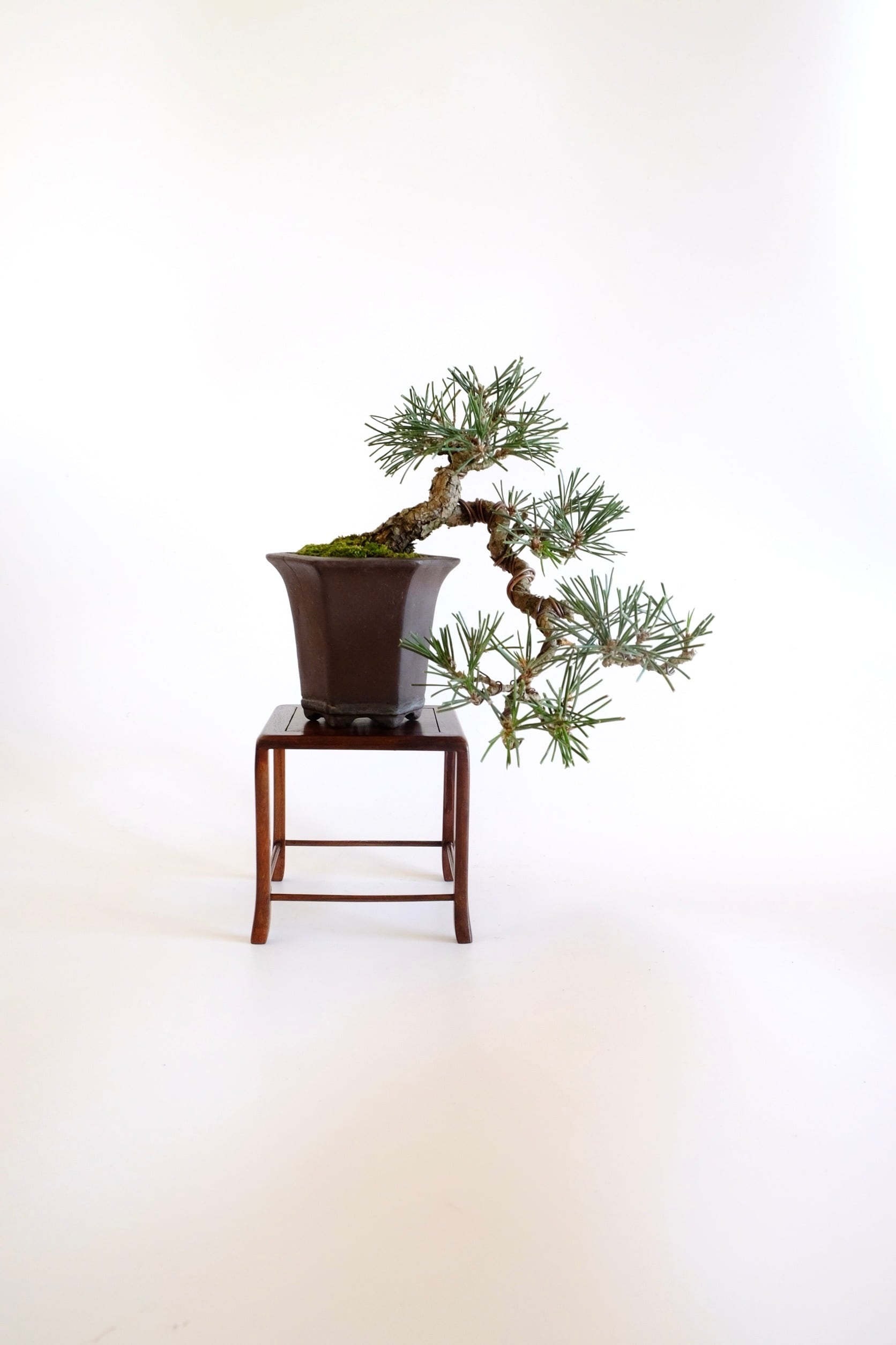 黒松は、長い年月をかけて育まれた荒々しい幹肌と美しい針葉が特徴です。日本庭園に欠かせない存在で、特に和の風情を引き立てる優雅さがあります。盆栽として育てることで、小さなスペースでもその魅力を楽しむことができ、初心者の方にもぴったりです。 こちらの黒松は、実生から育てた10年ほどの苗を使用し、丁寧に曲を付けて懸崖に仕立てました。